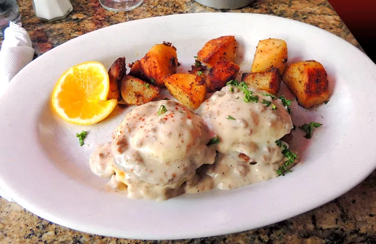 • Big, classic American breakfast plates: omelets, waffles, Benedicts, scrambles.